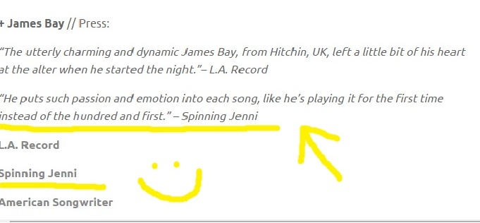 I gave my honest, whole hearted review of James Bay’s music and it feels so awesome to see my words in quotes. If you still haven’t checked him out, please read my post titled You Should Be Listening to James Bay.